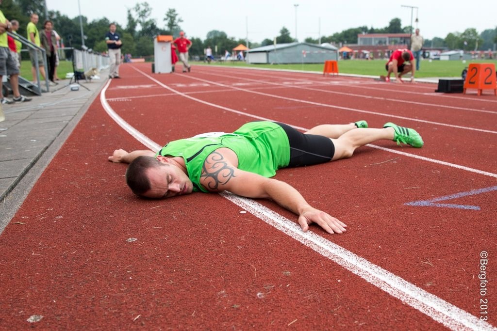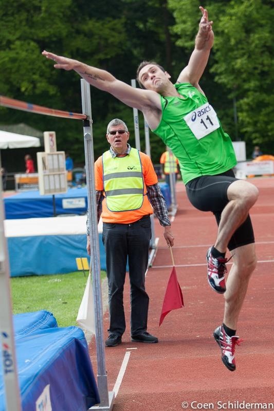 Ik heb na de Nk indoor met een heerlijk warm voorjaar erg goed doorkunnen trainen en kon mijn rentree tijdens de 10-kamp maken op mijn thuisbaan van AV’34. Waar het NK ( hoe symbolisch) ook 10 jaar niet meer was georganiseerd. Deze meerkamp was fantastisch om weer te mogen doen. Ik was in vorm en eigenlijk na dag 1 stond ik er al zo goed voor dat ik kon gaan winnen. Maar daar ben ik helemaal niet mee bezig geweest. Na te zijn gefinisht was ik de nieuwe Nederlands kampioen meerkamp. Met een dik persoonlijk record. Maar het viel erg zwaar. 9 jaar geen meerkamp gedaan, dan is het wel een hele grote belasting.Bas3