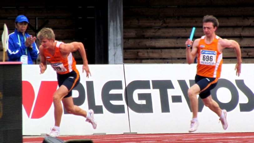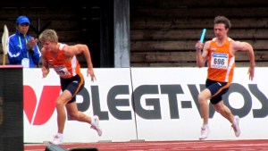 4de loper tijdens kwalificatie EYOF 4x100m  42,55sec Tilburg
